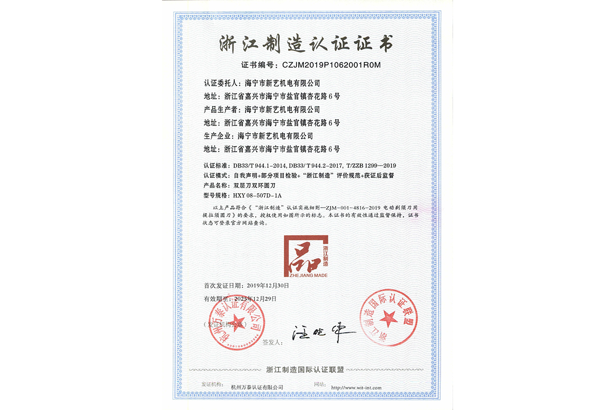 通過浙江制造品字標(biāo)認(rèn)證